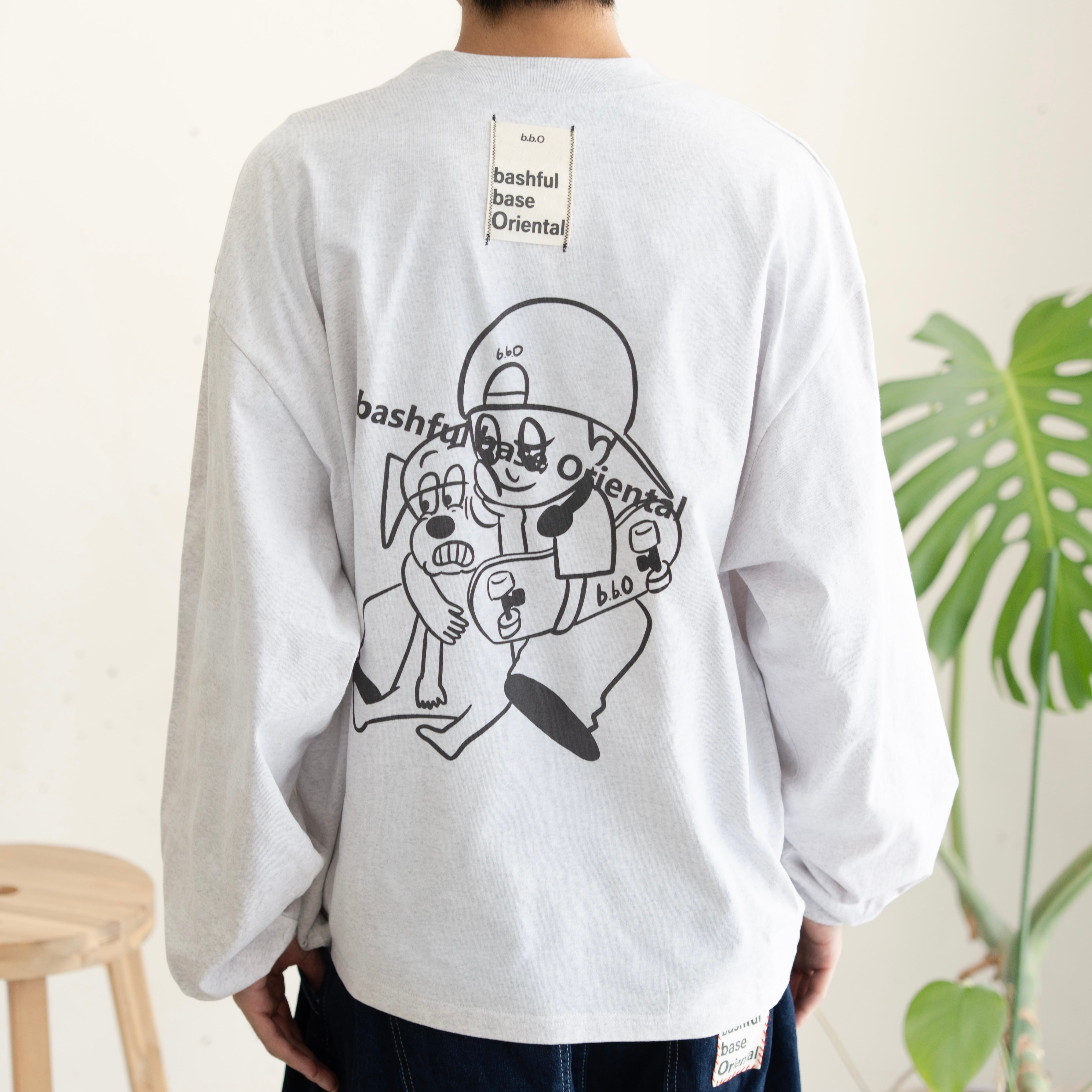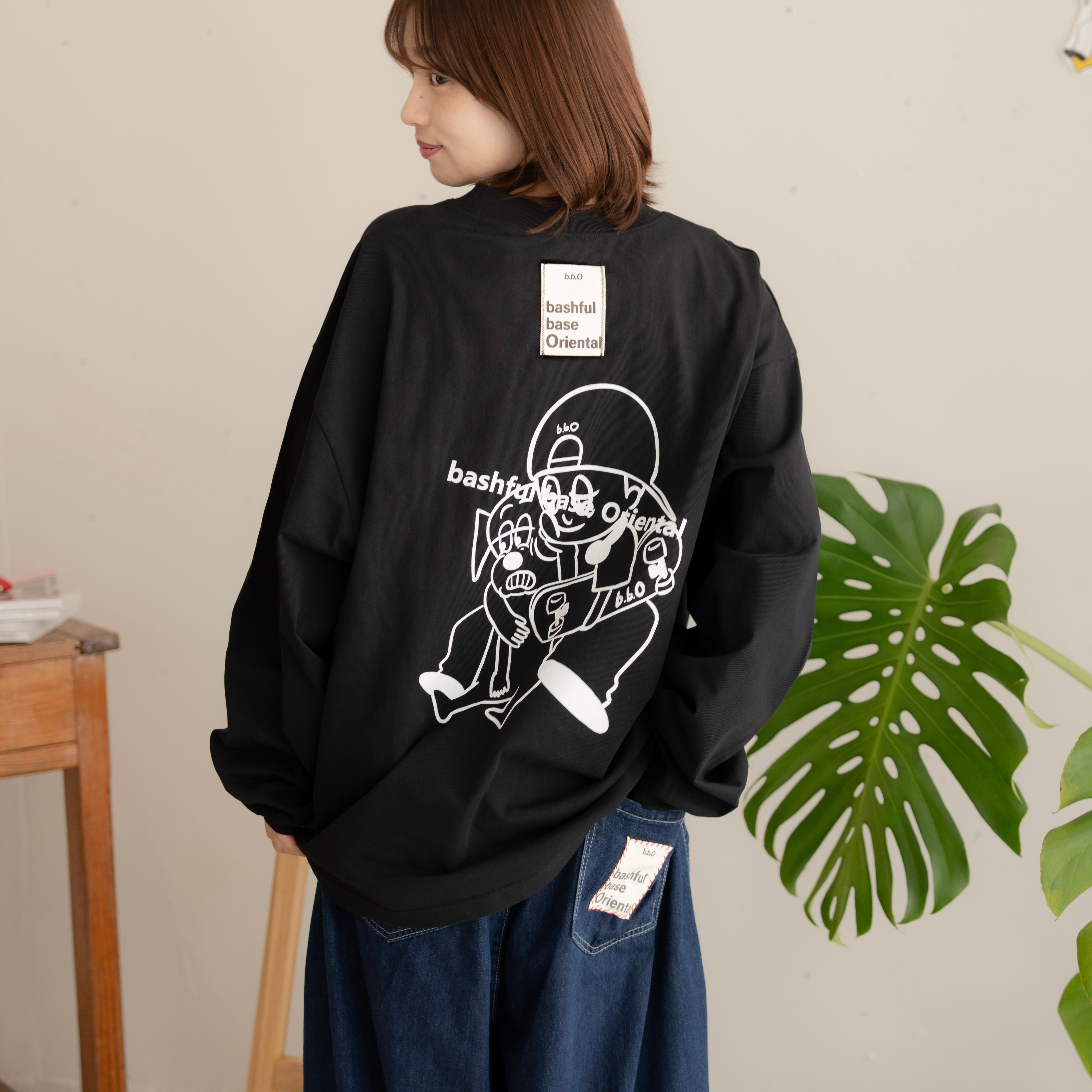 大胆なグラフィックと、愛嬌あるキャラクターを掛け合わせた、b.b.OらしいストリートユーモアあふれるロングスリーブTシャツ。