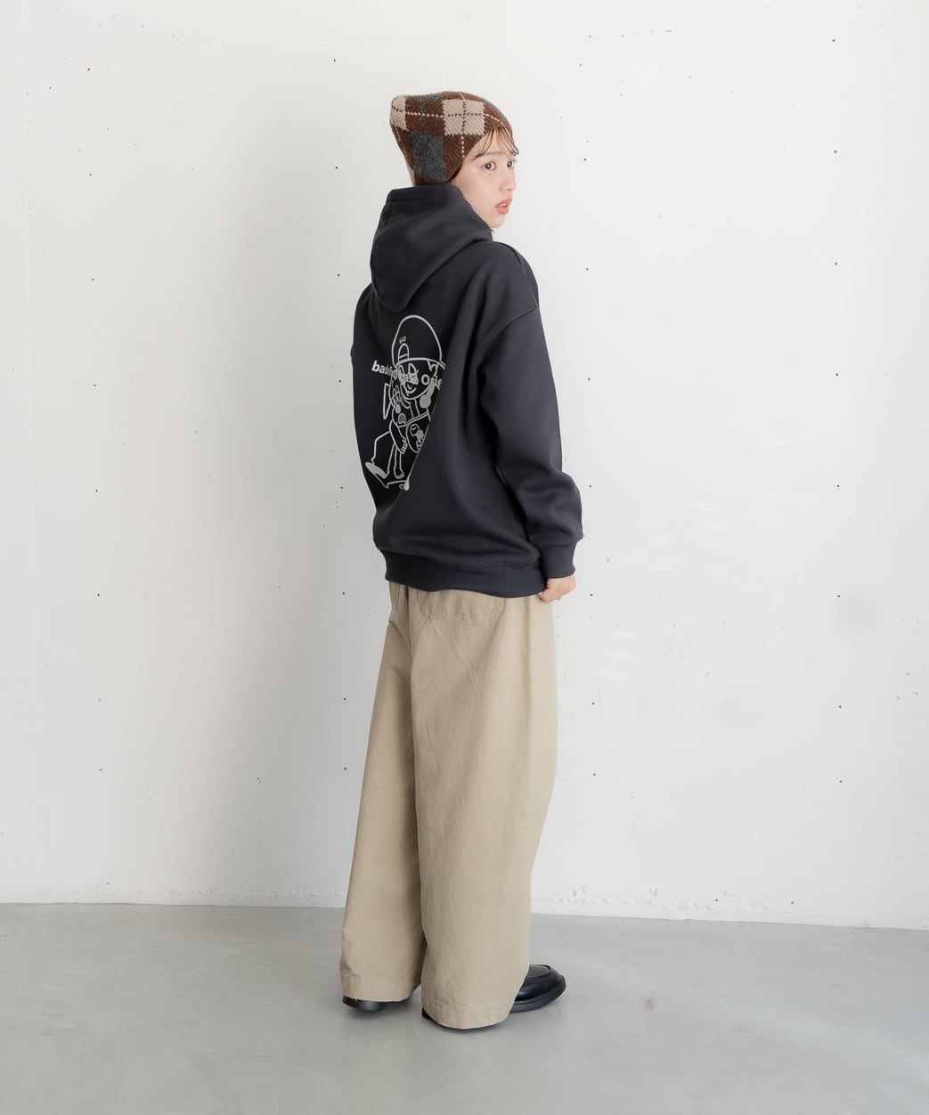 ・細身のボトムと合わせて、キャラクタープリントを主役にしたバランスコーデ