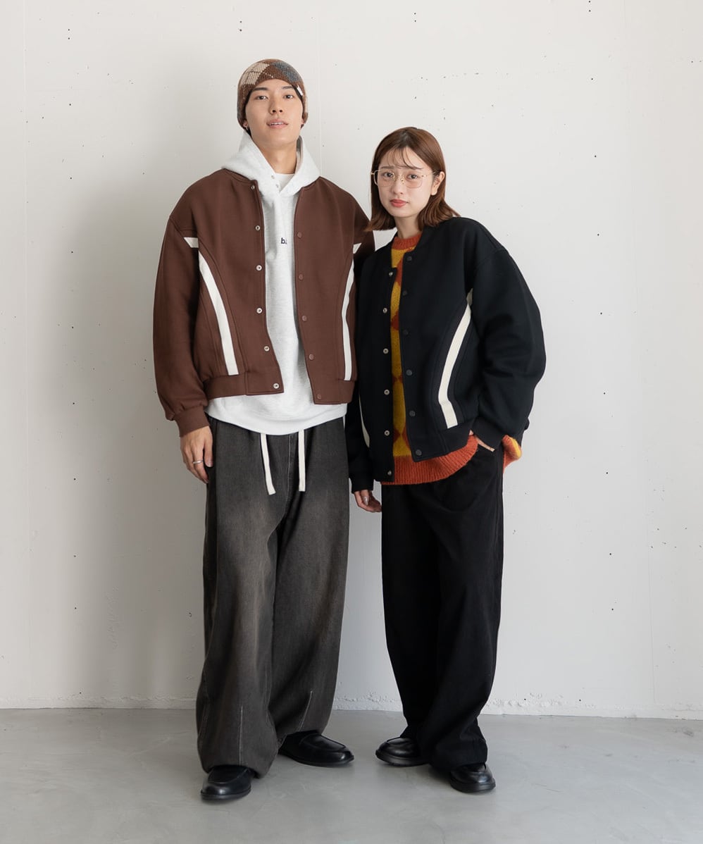 大胆なカーブラインを配した、b.b.Oらしい遊び心と存在感を兼ね備えたワークブルゾン。