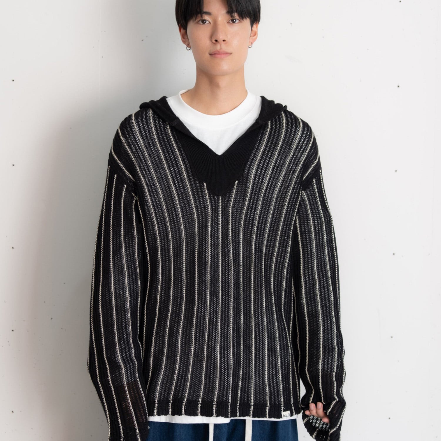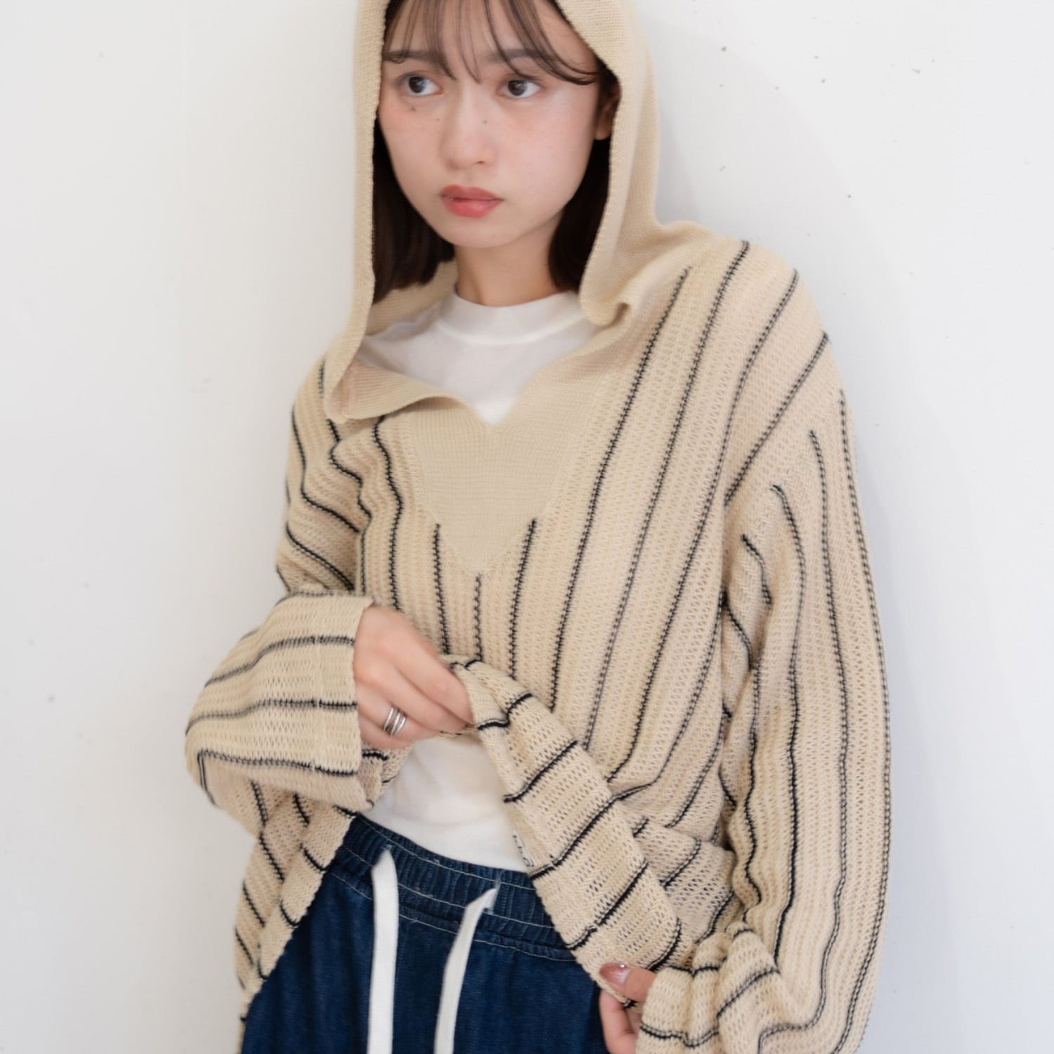 【bbO】ストライプニットパーカー/メキシカンパーカー