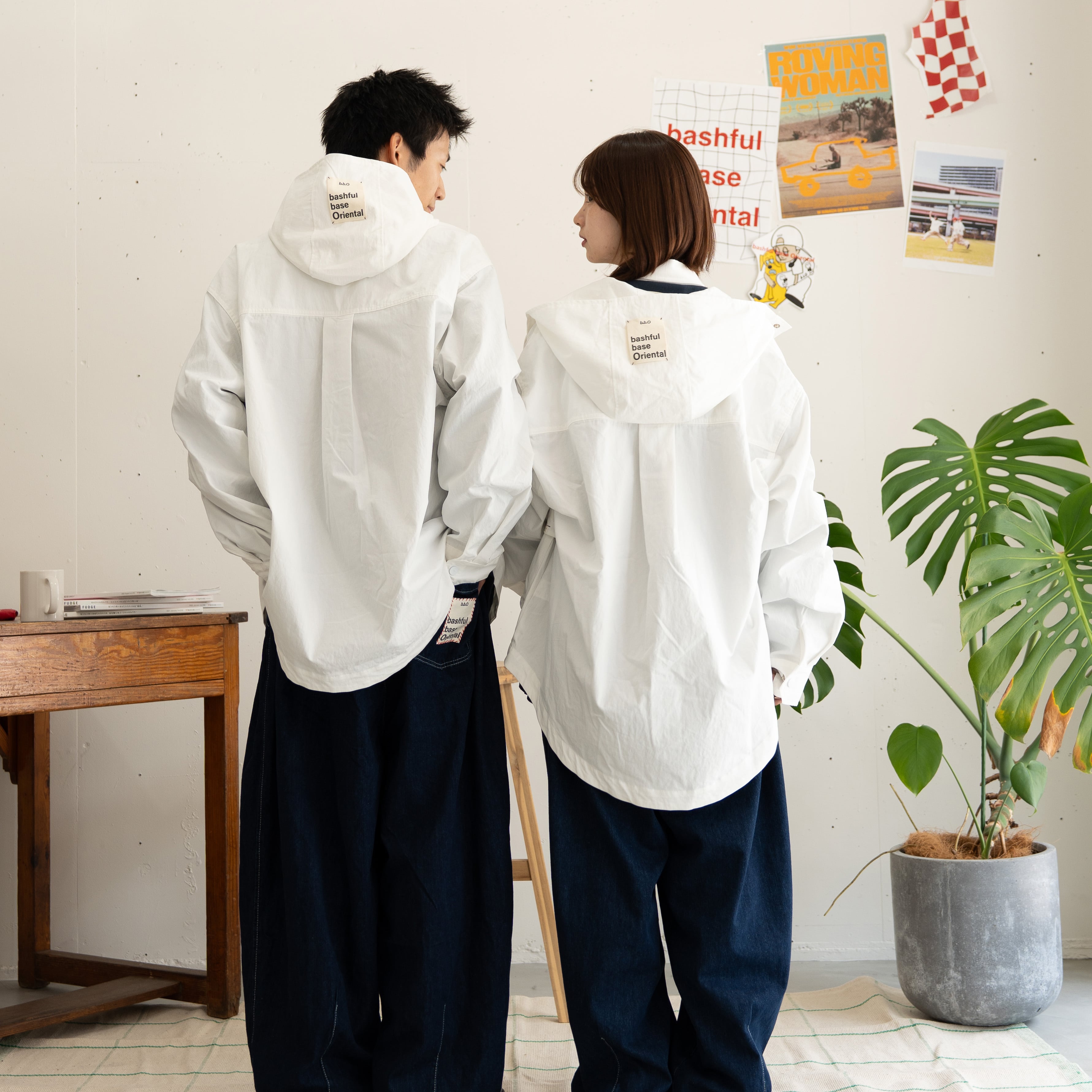 さらに、フードには大判のb.b.Oネームを4点手縫いで配置し、後ろ姿にもインパクトをプラス。